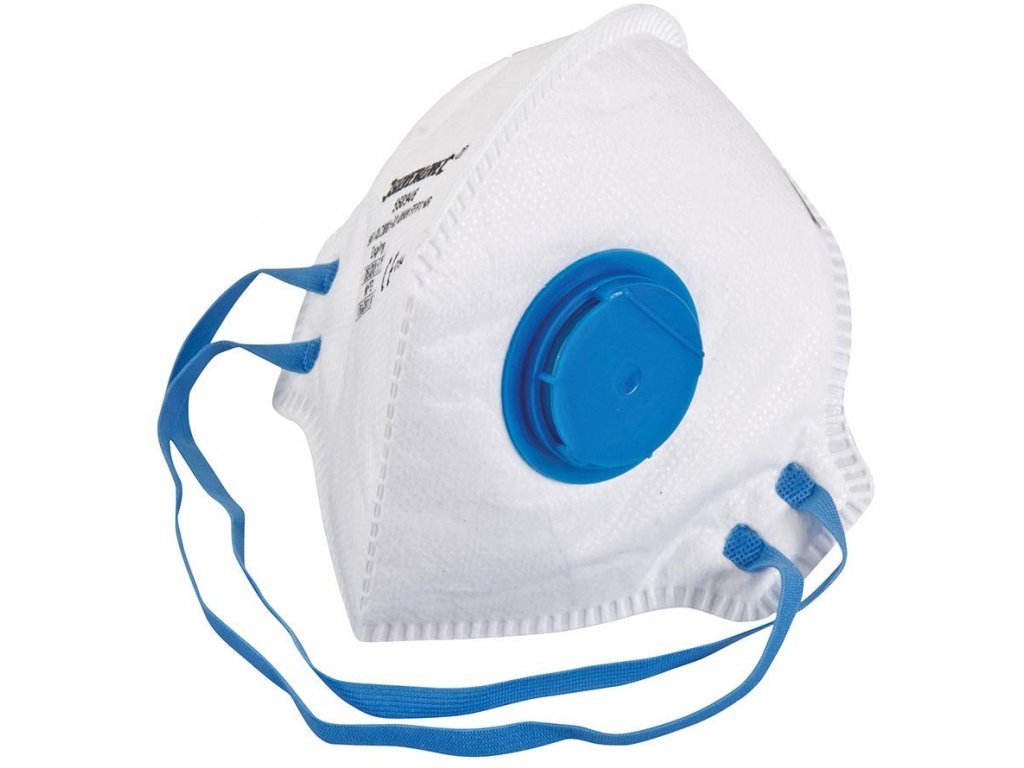 Ergonomicky tvarovaný ochranný respirátor FFP3 bez výdychového ventilu. Forma mušle Farba: biela Balenie 1 ks
